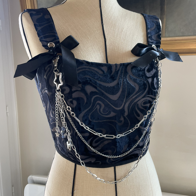 1. sur un corset ou une tenue,