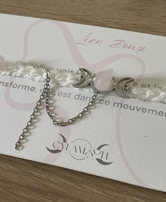 Ce collier unit le fil, la pierre et le métal pour rappeler que l'amour n'est jamais figé.